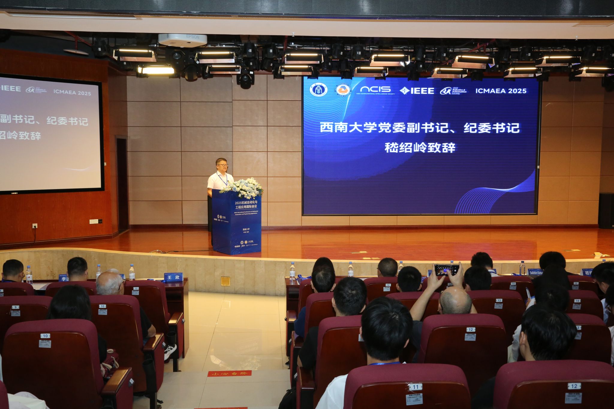 嵇绍岭致辞介绍了学校在机械自动化及工程应用领域取得的成果,希望本次会议为海内外学者搭建跨学科国际交流平台,推动智能制造、农业装备等领域的创新与协同发展。
