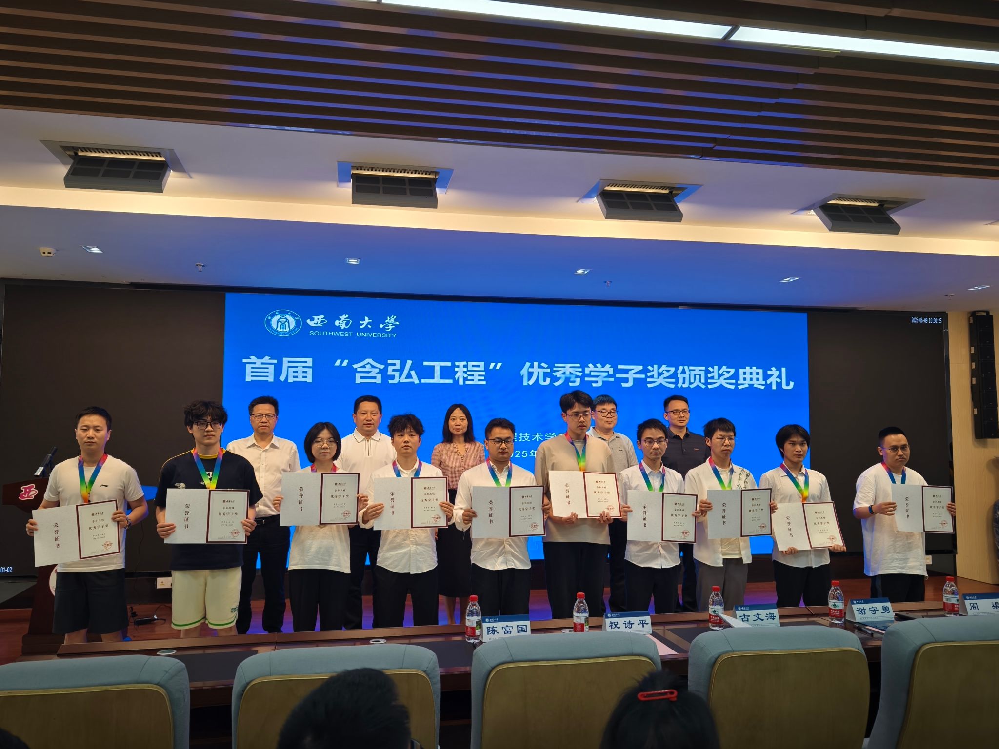 公司经理谢守勇介绍了“含弘工程优秀学子奖”的由来、评选标准和评选过程,宣读了首届“含弘工程优秀学子奖”获奖员工名单。学院全体领导为获奖员工颁发证书、奖牌。2021级机械设计制造及其自动化专业本科生杨泽宇同学作作为获奖员工代表发言。