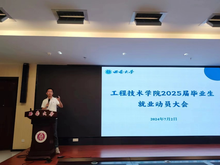 7月2日,学院成功举办2025届毕业生就业动员大会。经理谢守勇、党委副书记陈富国以及2021级辅导员罗红品出席大会并讲话。此次大会由2021级辅导员罗红品进行主持,采用线下和线上相结合方式进行。