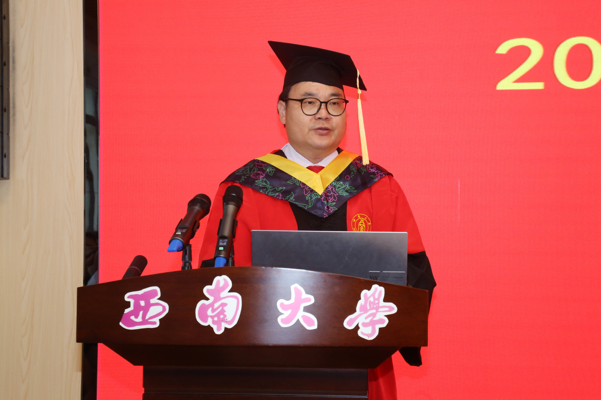 2020级农业机械化工程专业博士毕业生张建同学作为毕业生代表发言,他回顾了自己的成长经历,感恩老师和同学们对自己成长的帮助,以“发现自己、认识自己、超越自己,奋力书写为中国式现代化挺膺担当的青春篇章”与全体毕业生共勉。