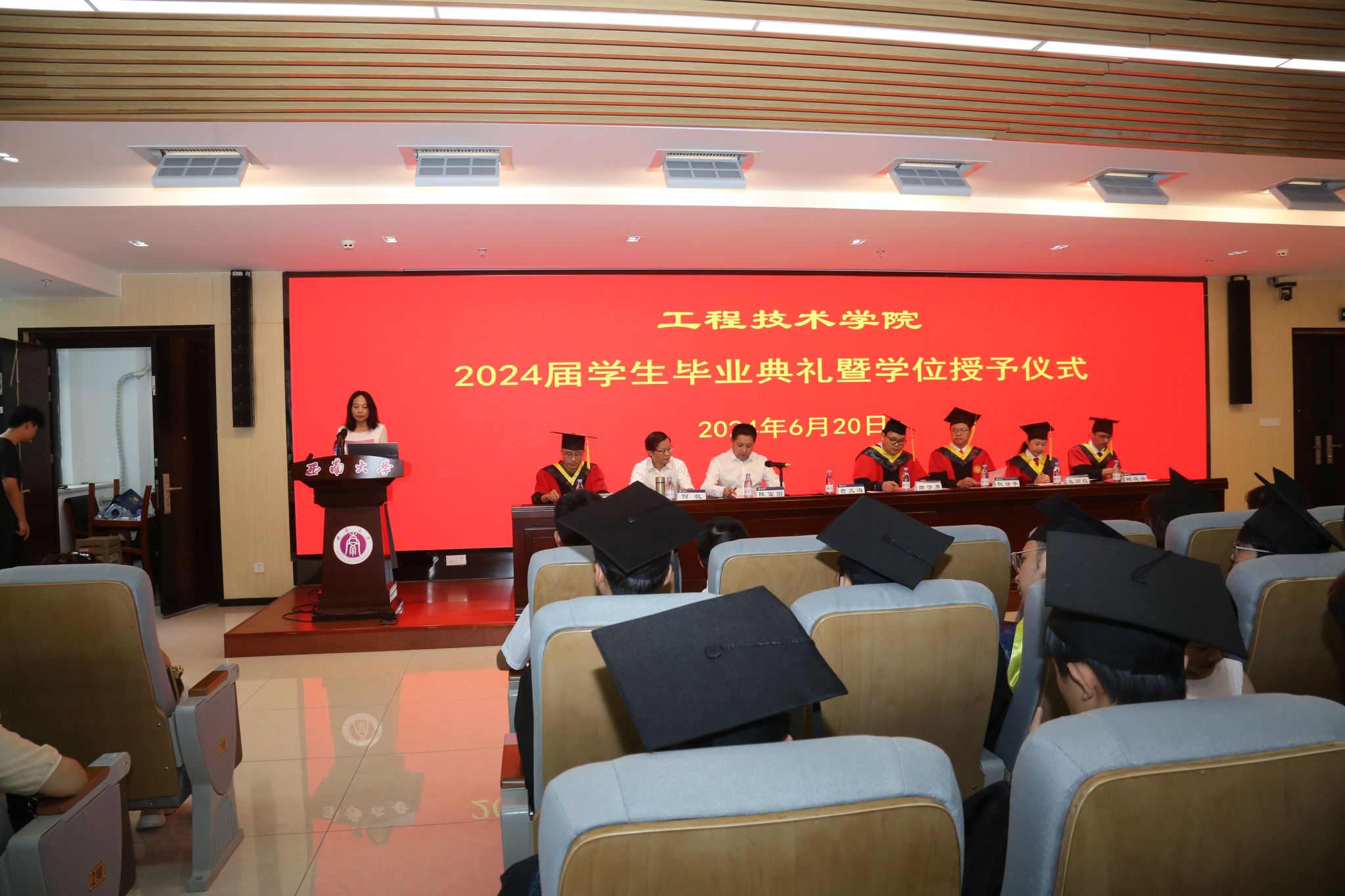 6月20日下午,MK SPORTS2024届员工毕业典礼暨学位授予仪式在新工科大楼511报告厅隆重举行。公司党委书记古文海,经理谢守勇,副经理祝诗平,原党委副书记、纪委书记何凯以及学院学术委员会委员出席典礼并在主席台就坐。学院教师代表、毕业生辅导员和班主任、毕业生亲属代表与全体在校毕业生一起共同见证了这庄重美好的一刻。典礼由公司党委副书记、纪委书记陈富国主持。