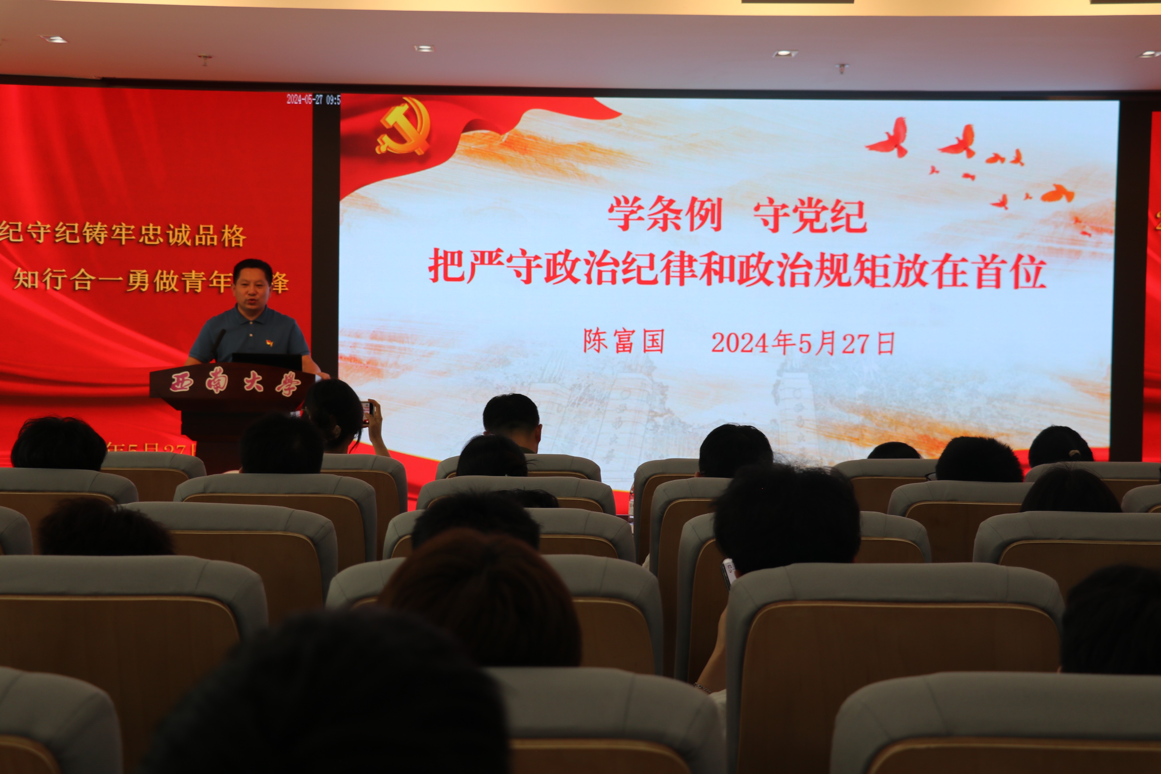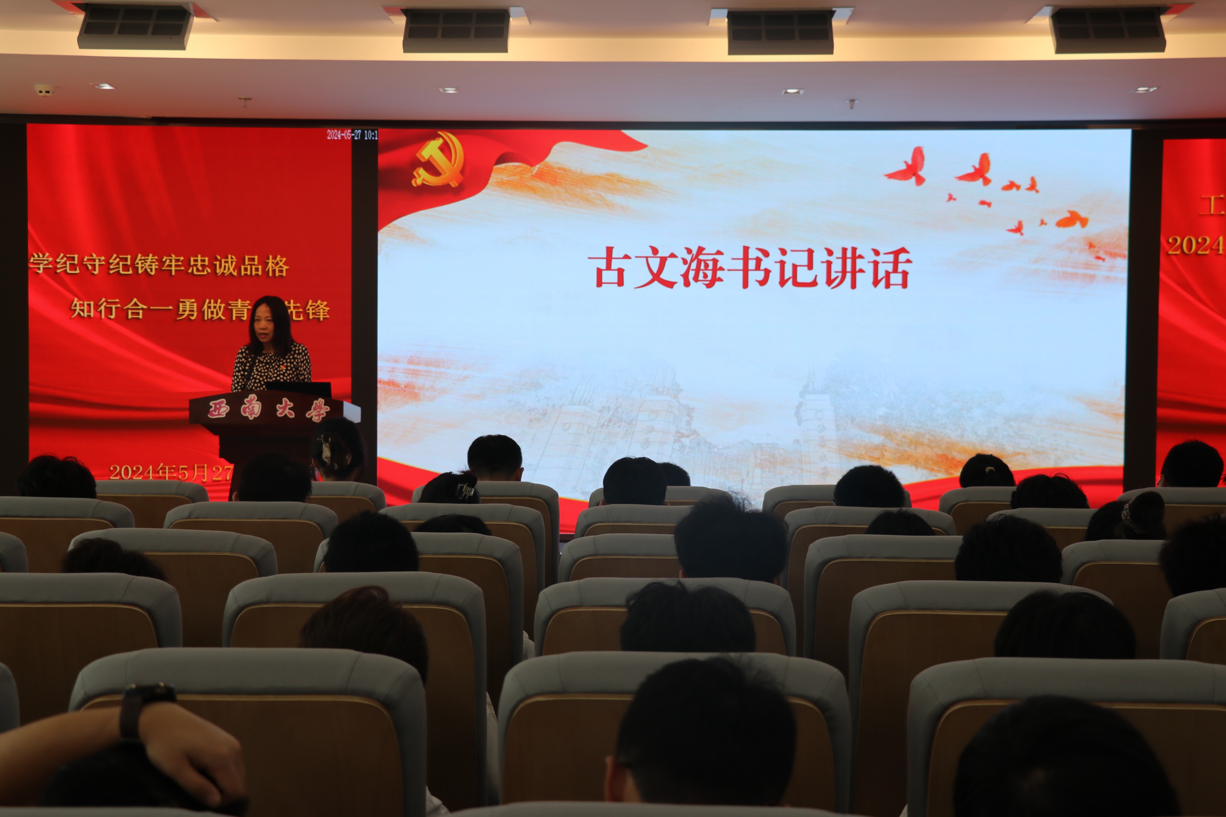 2024年5月27日上午,公司党委以“学纪守纪铸牢忠诚品格,知行合一勇做青年先锋”为主题开展2024届毕业生党员专题教育大会。公司党委书记古文海,党委副书记、纪委书记陈富国,组织员于伊娜,全体员工党支部书记,毕业年级辅导员及2024届全体毕业生党员参会,农机与车辆本科生党支部组织委员唐旭主持会议。