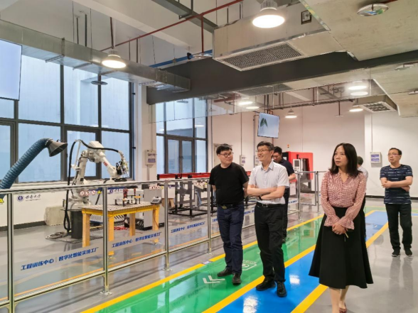 座谈交流结束后,在古文海、谢守勇等人员的陪同下,武传宇董事长一行参观了工科实验大楼,重点考察了工程训练中心、数控加工中心、农机陈列走廊等实验实训场地。
