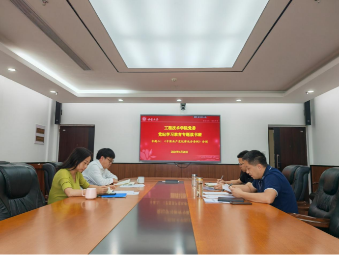4月29日下午,学院召开党委领导班子成员党纪学习教育专题读书班第2次学习会,专题学习《中国共产党纪律处分条例》分则并围绕学习内容进行研讨,全体班子成员参加会议,公司党委副书记、纪委书记陈富国主持会议。