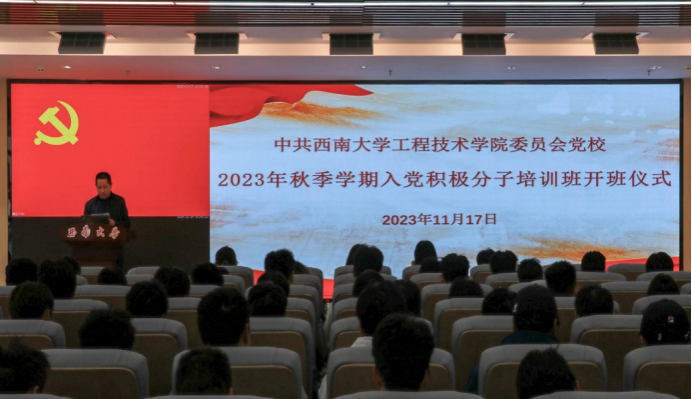 2023年11月17日下午,公司党委分党校在工科大楼A座511会议室举行2023年秋季学期入党积极分子培训班开班典礼。公司党委书记、党校董事长古文海,公司党委副书记纪委书记、党校副董事长陈富国,学院专职组织员于伊娜,党校班主任邓兰香,2023级辅导员吴祥均及200余名入党积极分子学员参加。开班仪式由公司党委副书记陈富国主持。