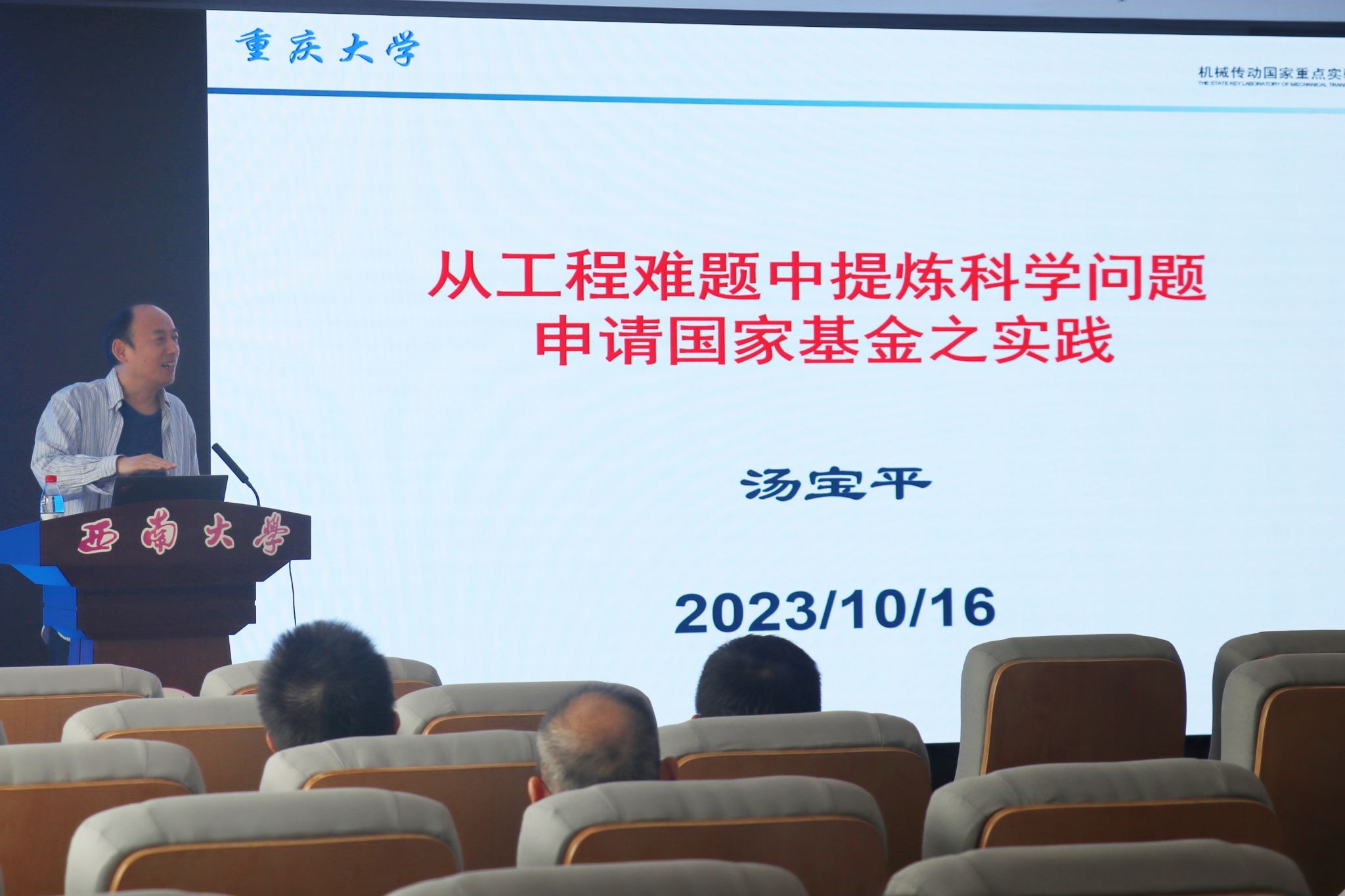 动员会第二阶段,学院邀请了重庆大学机械与运载工程学院副经理汤宝平教授从科学问题、科学基金、mksport官网三个方面作题为《从工程难题中提炼科学问题申请国家自然科学基金》的报告。最后,汤宝平教授就高鸣源、冀杰、蔡维等与会老师提出的问题进行了深入的交流探讨。