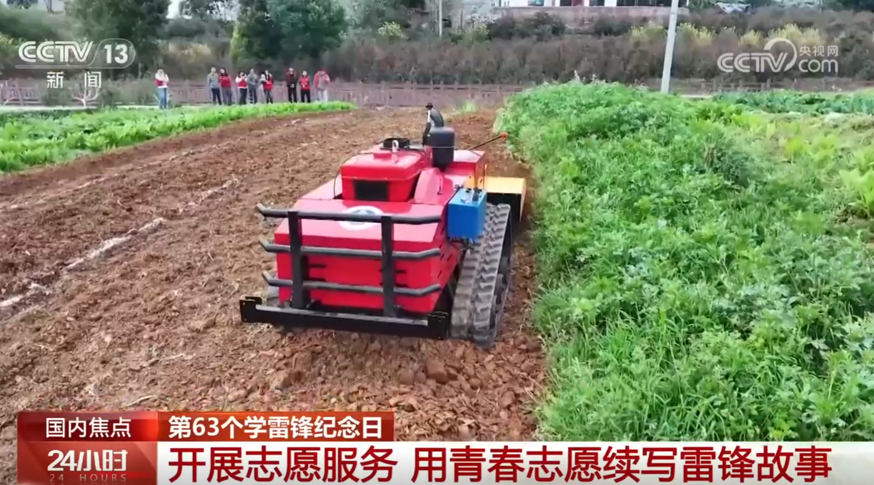 在全国第63个学雷锋纪念日到来之际,学院师生积极参与在北碚区静观镇、大盛镇开展的“春风送暖学雷锋,志愿服务溢乡村”系列助农活动,用自主研发的遥控式机电液一体化复合型旋耕机服务春耕,以专业智慧助力乡村振兴,传承雷锋精神。活动被央视《新闻联播》《24小时》《人民网》等媒体栏目报道点赞。