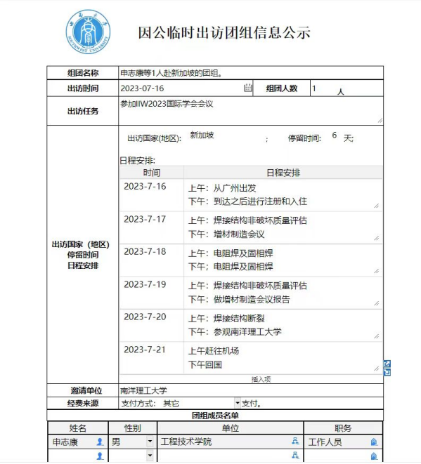 关于教职工因公临时出国(境)团组信息的公示