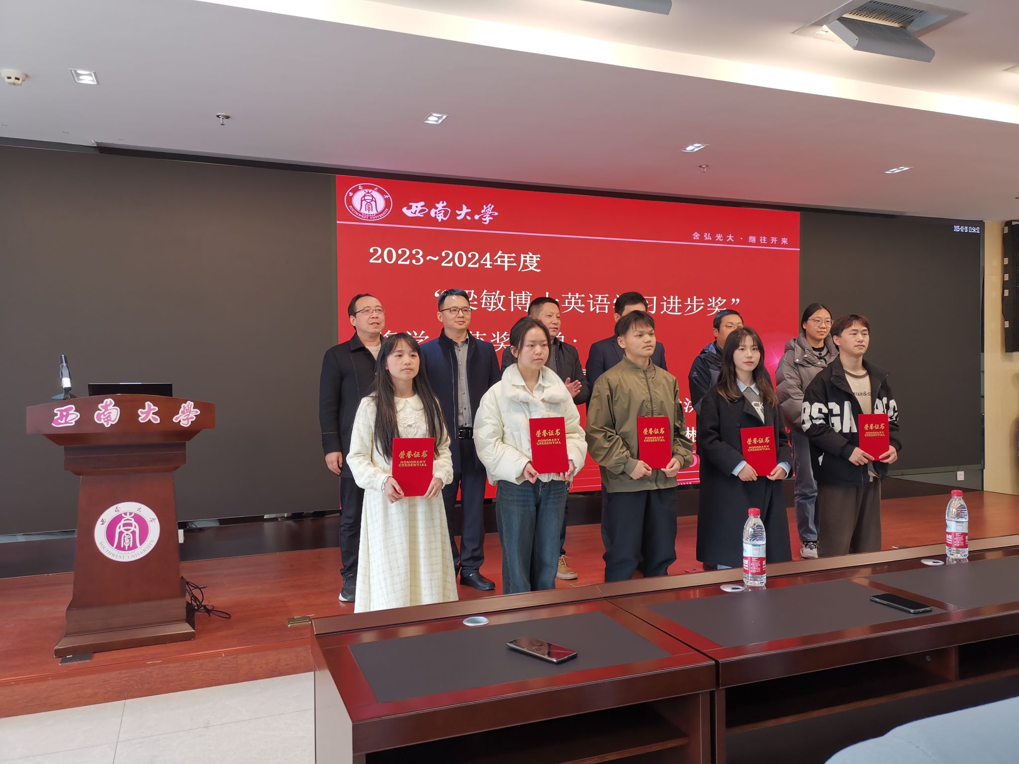 颁奖典礼由学院副经理周渠主持,他介绍了“四川省农业机械管理局奖”奖学金和“梁敏博士英语学习进步奖”奖学金的设立背景及意义。公司党委副书记陈富国宣读了“四川省农业机械管理局”奖学金和“梁敏博士英语学习进步奖”奖学金的评定办法,并宣布了获奖名单。