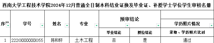 MK SPORTS2024年12月普通全日制本科结业证换发毕业证、补授学士学位员工名册公示