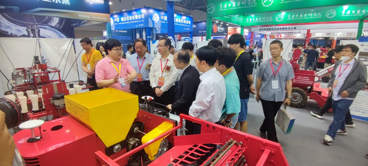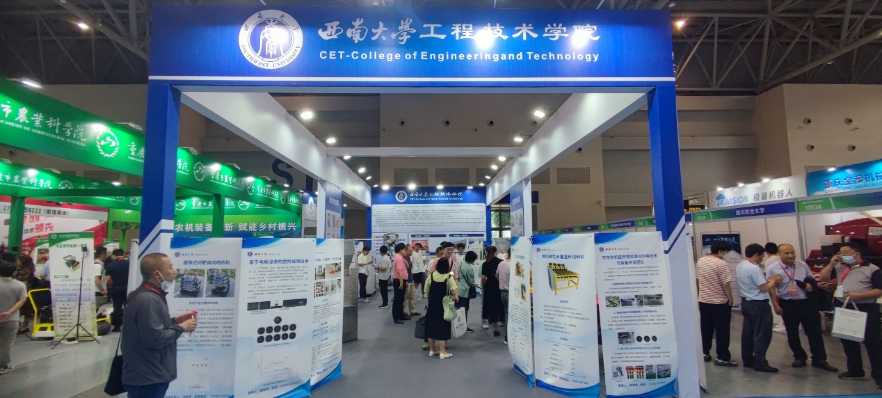 此次展览会来自重庆、四川、浙江、湖南等19个省区市的255家农机企业、科研机构参展,展出面积1.8万平方米,吸引了超200家企业、科研机构参展。展会上,学院通过实物、海报的形式展出种植、收获、农产品初加工、畜禽养殖等相关设备50余台/套,得到了重庆市农业农村委员会、重庆市经济和信息化委员会相关领导亲临展台指导与肯定。如为填补丘陵山区大豆玉米带状播种机械空缺所设计的集开沟、施肥、播种、覆土于一体的电控精量播种机,精度与效率高,得到了重庆广电、重庆新闻联播等媒体报道。