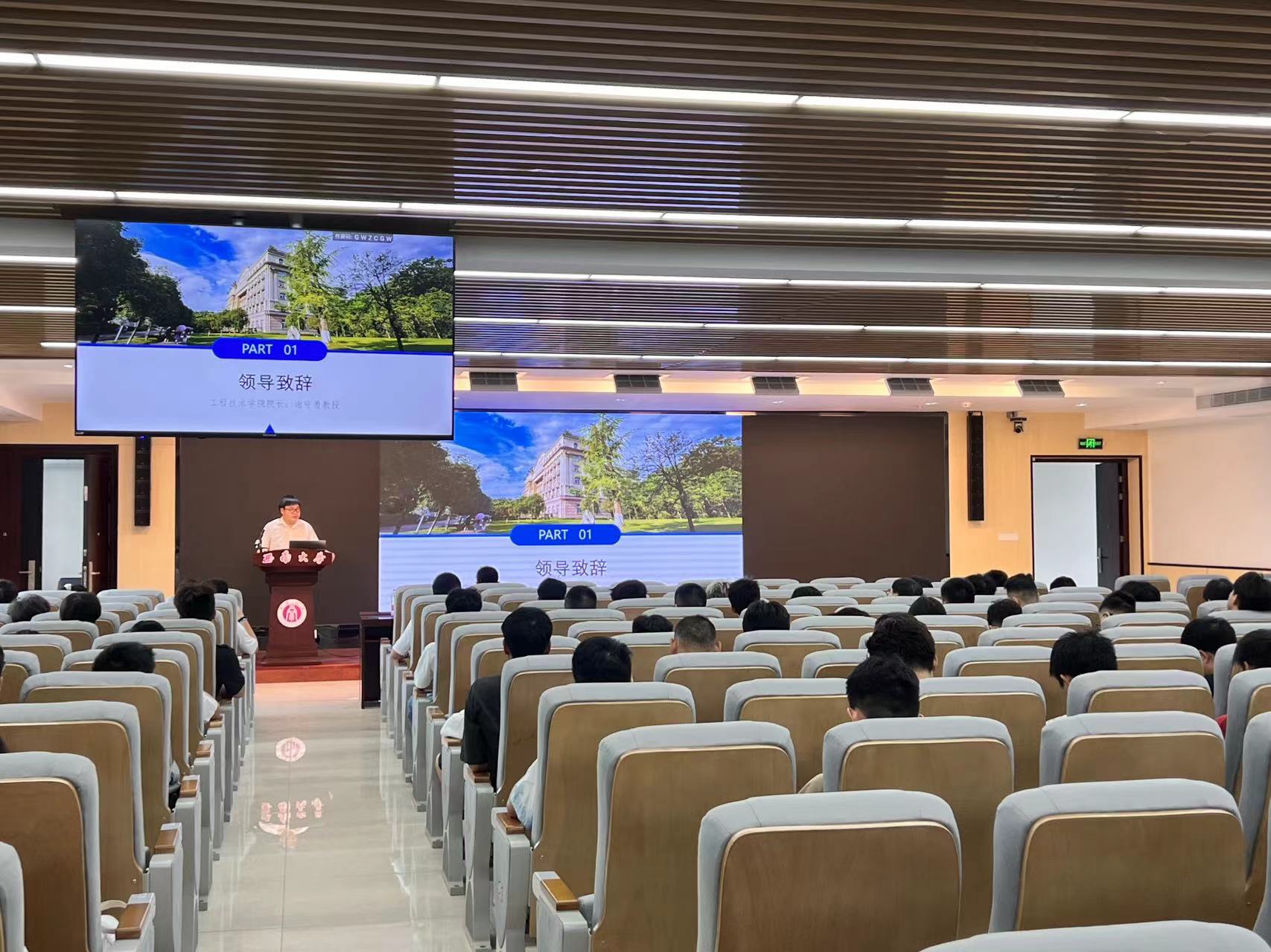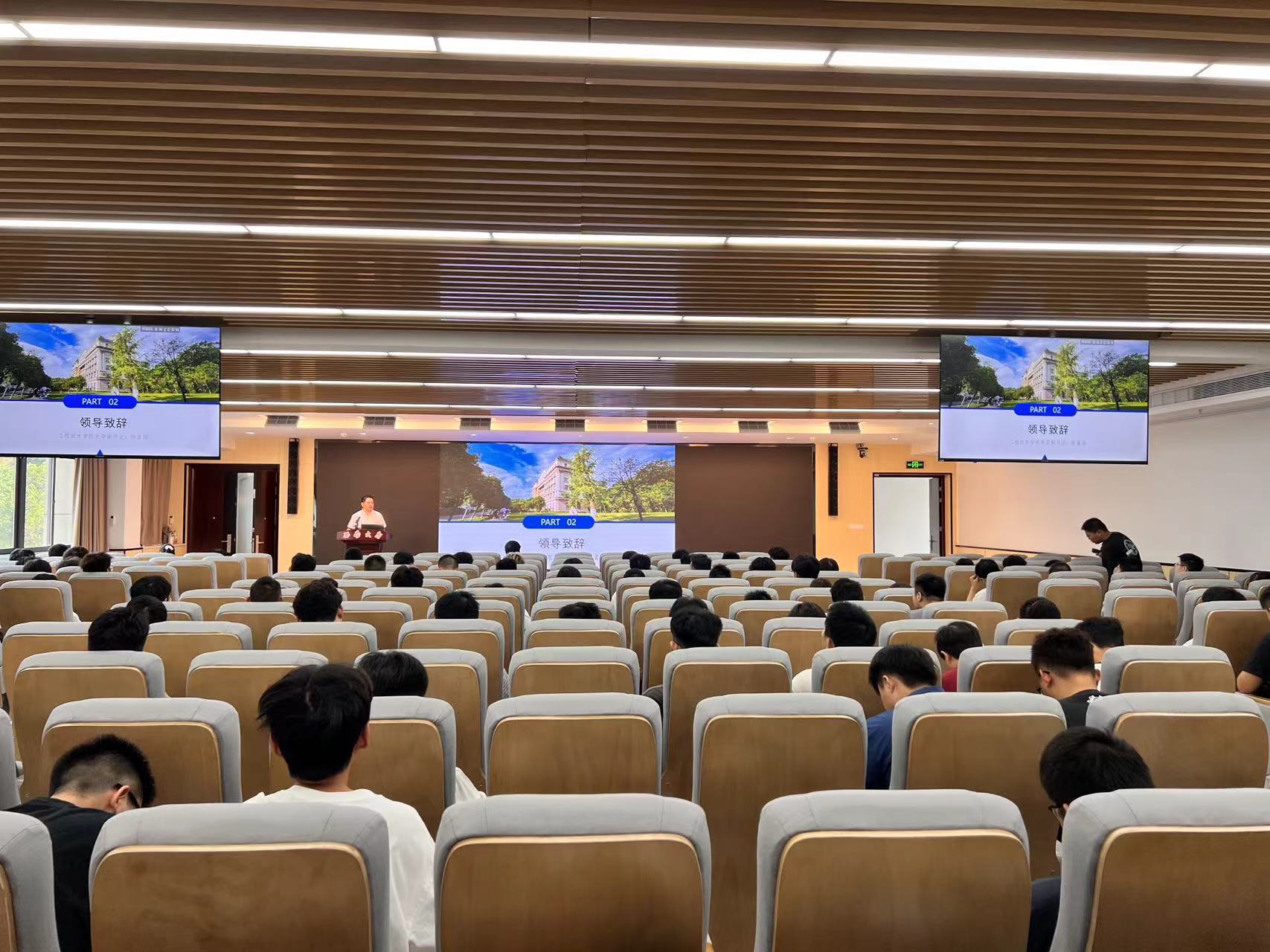 首先,谢守勇经理致辞并向同学们介绍了学院整体情况。谢守勇经理对同学们的到来表示热烈欢迎。他从学院概况、人才现状、学科发展以及人才培养等方面进行了细致的讲解,使同学们对学院有了更深的认同感和归属感。他对同学们提出了几点希望:一是要坚定理想信念,立鸿鹄之志;二是要遵守学术道德行为规范,潜心科研、勇攀高峰;三是要全面发展,继承和发扬以爱国主义为底色的科学家精神。